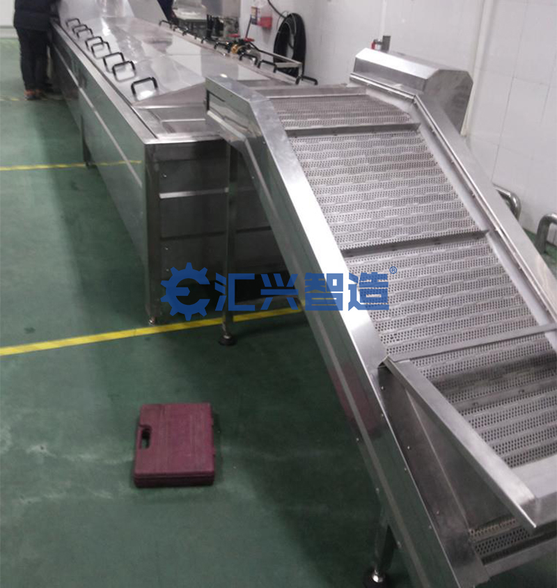 本流水線是由氣泡清洗段、高壓噴淋清洗段、成品挑選區(qū)等組成。物料通過氣泡清洗段,刷洗生姜表面的大部分泥沙,自動提升到高壓清洗環(huán)節(jié),進(jìn)行生姜的徹底清洗,噴淋段采取可調(diào)節(jié)噴頭,控制噴頭出水量,更好地保護(hù)生姜表皮,達(dá)到產(chǎn)品出口標(biāo)準(zhǔn)要求。 滾杠式噴淋清洗機(jī) 該流水線是由輸送區(qū)、清洗區(qū)、瀝水區(qū)及循環(huán)水處理區(qū)等組成。物料在清洗過程中360度旋轉(zhuǎn),多方位無死角清洗,徹底解決了傳統(tǒng)清洗機(jī)設(shè)備保潔難、次生污染嚴(yán)重的問題。 網(wǎng)帶式清洗機(jī)采用高壓氣泡水浴清洗,清洗能力大、洗凈率高且不損傷物料,物料經(jīng)網(wǎng)帶輸送至噴淋清洗后進(jìn)入下道工序。 噴淋式清洗機(jī) 采用高壓噴淋清洗,清洗能力大、洗凈率高且不損傷物料,特別適合嬌嫩果蔬,雜質(zhì)多、難去除的食品清洗,可與篩板、網(wǎng)帶式清洗機(jī)組合使用。