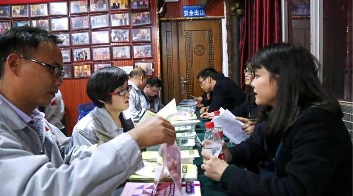 社保局工作人員現(xiàn)場為匯興智造員工解答問題