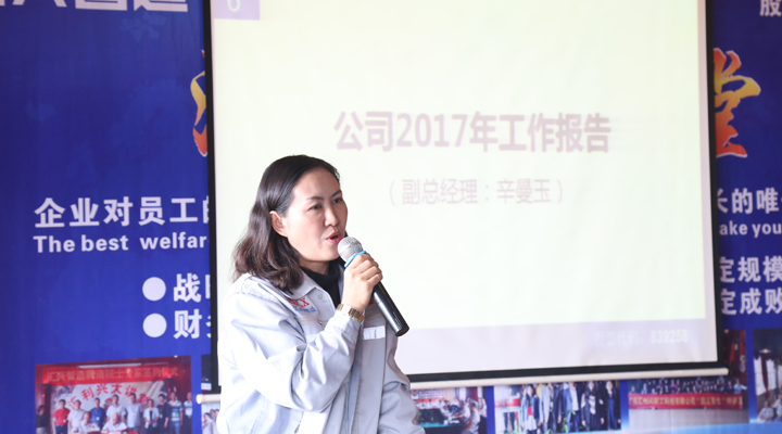 匯興智造副總經(jīng)理辛曼玉以一句“2017,您幸福嗎?”開啟大會的第六項議程,作2017年年度工作報告。辛副總說:“在2017年,匯興智造實現(xiàn)了16年來都沒有實現(xiàn)的銷售業(yè)績;成立了研究院、技術(shù)研究中心等研發(fā)機構(gòu),公司的研發(fā)能力得到提高;調(diào)整了產(chǎn)品結(jié)構(gòu),拓展了行業(yè)范圍,并且守護住了傳統(tǒng)行業(yè),夯實了業(yè)績;實現(xiàn)了配件事業(yè)的業(yè)績倍增,取得喜人成績;加強了人力資源建設(shè),老員工在進步,能力在提升,而高學歷、高層次員工的加盟,讓匯興智造如虎添翼。這一年,雖然我們經(jīng)歷了困難、挫折,但取得的成績是驕人的。匯興智造在往前走,往上走,我們在上坡的過程中,會氣喘,會腿酸,很累,但當我們爬上山頂?shù)臅r候,那種‘會當凌絕頂,一覽眾山小’的豪情和喜悅卻是無法比擬的。所以,如果有人問:2017,您幸福嗎?我會回答:我很幸福!”