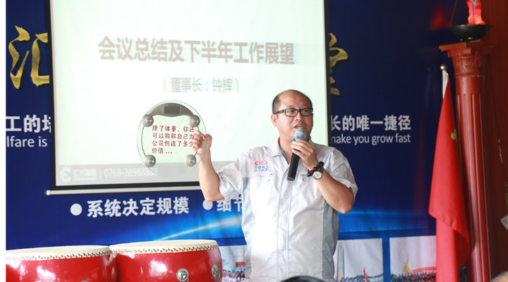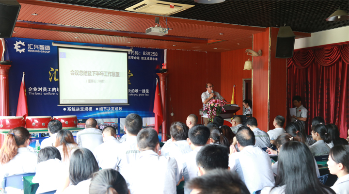 最后,由鐘輝董事長作會議總結(jié)及下半年的工作展望?;厥咨习肽辏?jīng)過全體匯興人的共同努力,匯興智造的業(yè)績趕超去年一年,并再次交出了亮眼的成績單,以“優(yōu)等生”的身份成功晉級到新三板的創(chuàng)新層,這對公司未來的發(fā)展,特別是沖刺更高的資本巿場有著重要而深遠的意義。作為植根于大嶺山的本土民營企業(yè),十七年來勤勤勉勉,絲毫不曾懈怠,也感恩大嶺山鎮(zhèn)這片熱土和好的營商環(huán)境,眾多領導干部、學者專家多次蒞臨匯興智造參觀調(diào)研和指導,給匯興智造的發(fā)展建言獻策,增光添彩。匯興智造作為大嶺山鎮(zhèn)市級“倍增計劃”試點企業(yè),也是東莞市知識產(chǎn)權(quán)重點保護企業(yè),新近又被獲評為“2016年度廣東省守合同重信用單位”。今年五月份,企業(yè)倍增辦順勢成立,匯興智造力爭在兩年內(nèi),狠抓業(yè)績,推動企業(yè)實現(xiàn)規(guī)模倍增、效益倍增、納稅倍增,一切以結(jié)果為導向,所有匯興人定以鐵一般的信仰,鐵一般的信念,鐵一般的紀律,鐵一般的擔當、朝著既定的目標奮勇前進。