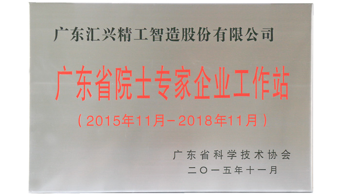 匯興智造廣東省示范院士專家企業(yè)工作站榮譽(yù)證書(shū)