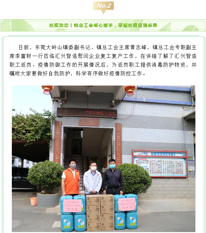 疫情無情,熱土有情!疫情期間,讓很多中小企業(yè)主都在發(fā)愁能不能熬過這個冬天和春天。匯興智造作為扎根莞邑二十年的本土企業(yè),在這樣的大環(huán)境下,影響自然不小。但是疫情發(fā)生以來,匯興智造深深地感受到各級政府在疫情期間努力改善和優(yōu)化特殊情況下的營商環(huán)境,幫助企業(yè)抗疫情、強服務、助復工、作為企業(yè)最堅強的后盾,眾志成城,共同抵御疫情帶來的損失,讓中小企業(yè)主吃了一顆“定心丸”。在此,匯興全體人員衷心地感謝大嶺山鎮(zhèn)這樣有情有愛的營商環(huán)境。