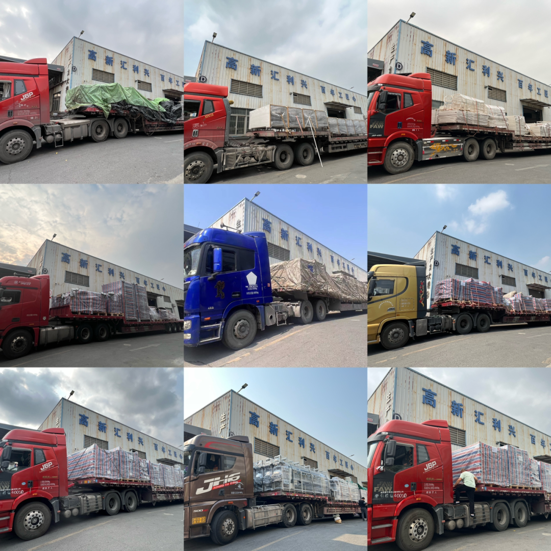 匯興智造總部工廠(chǎng)迎來(lái)春季出貨的高峰期!廠(chǎng)區(qū)內(nèi),一輛輛大貨車(chē)排起長(zhǎng)龍,各種叉車(chē)、搬運(yùn)來(lái)回穿梭,一派熱鬧繁忙的景象。