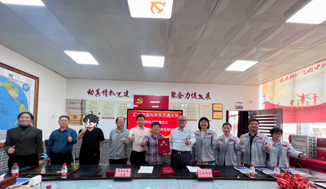 簽署儀式、科技人才培育與技術(shù)互聘儀式。華東交通大學(xué)劉院長(zhǎng)一行,及匯興智造董事長(zhǎng)、總經(jīng)辦相關(guān)人員出席了簽署儀式。