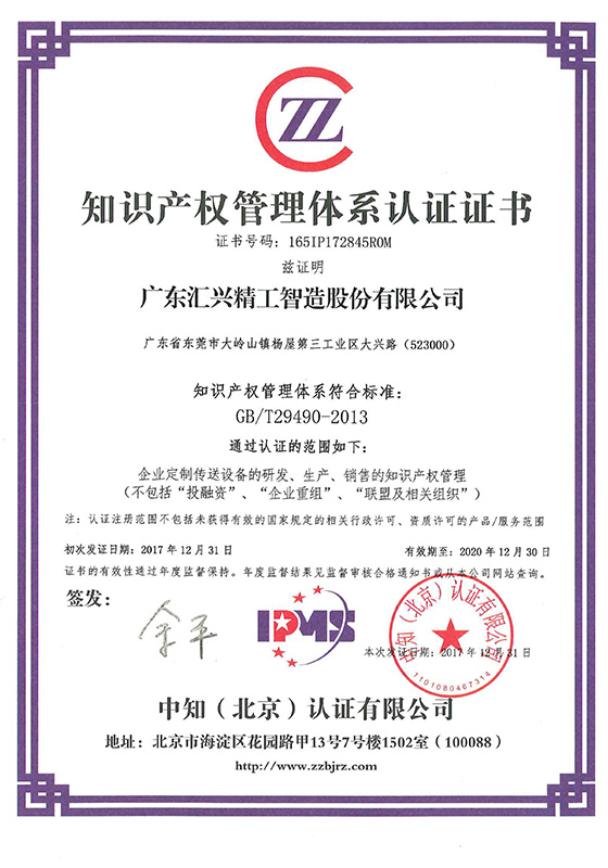 知識產(chǎn)權(quán)管理體系認證證書